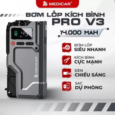 Kích Bình Bơm Lốp Ô Tô V3 PRO 14.000mAh 4in1 Medicar hướng tới người cần một bộ kích bình bơm lốp ô tô gọn để đi đường dài, xử lý nhanh các tình huống bình yếu, lốp thiếu hơi hoặc cần thêm đèn chiếu sáng khẩn cấp. Đây là nhóm sản phẩm được nhiều người quan tâm vì tính tiện lợi và khả năng gom nhiều chức năng vào một thiết bị.